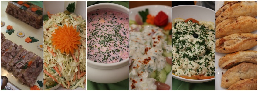 1. Bretzel (Alemania)2. Pan de centeno (Landbrot)3. Pan de especias4. Pan de patatas húngaro5. Partybrot (Alemania)6. Pan Stöllen7. Simit (Turquia)En las elaboraciones frías encontramos:1. Manitas de cerdo con gelatina (Polonia)2. Ensalada "Coleslaw" (Alemania)3. Tarator (sopa fría) (Polonia, Rusia)4. Ensalada de pepino y yogurt5. Ensalada Alemana6. Zeytin boregui