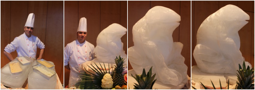 La escultura de hielo estuvo a cargo de mi tocayo Víctor que hizo una enorme rana (muy bonita), y los soportes para helados:
