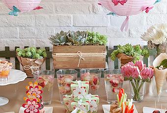 Os presento este buffet tanto dulce como salado, muy primaveral , con toques muy naturales, refrescante y absolutamente gourmet.Detalles de decoración: