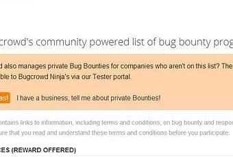 BugCrowd es un sitio en el que compilan una lista de empresas que ofrecen recompensas como las que ofrecen Facebook, Google y Yahoo! a las personas que descubren vulnerabilidades en sus sistemas.
