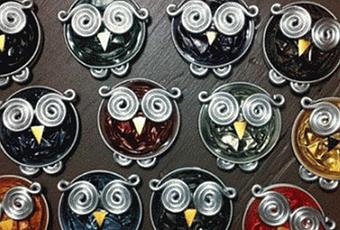 En primer lugar limpiamos y vaciamos nuestra cápsula nespresso. Aplastamos la cápsula nespresso Cojemos un alambre y lo enrollamos en espiral, hacemos dos grandes y dos pequeñas espirales encolamos por detrás, abajo, las espirales pequeñas y serán las patas encolamos las grandes a modo de ojos Cortamos una cartulina en forma de triangulito y será nuestro pico, lo encolamos Y ya tenemos nuestro búho nespresso que podemos convertir en collar, pulsera, broche... ¡las posibilidades son infinitas!