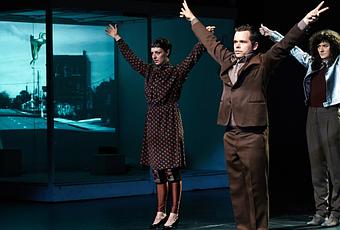 Los elementos en escena son escasos, pero imprescindibles, acompañando la tensión, el nerviosismo y la animadversión que provoca y prolonga la estridencia musical.