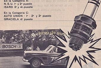 Los Grandes Premios Internacionales de Turismo, disputados en territorio argentino, sirvieron para publicitar automóviles y autopartes. Justamente en esta nota de la sección “Accesorios y Algo Más” veremos una vieja publicidad de las bujías Bosch, y su participación en la carrera del año 1963.