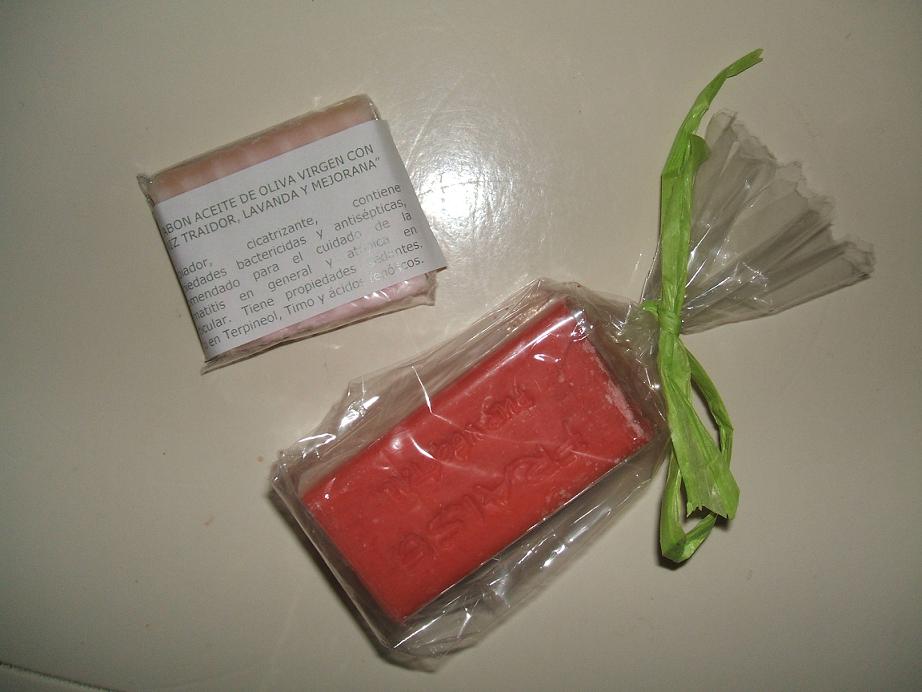 - Y también me han enviado estos dos jabones.El primero se trata de un jabón de Raíz del traidor, un ingrediente muy especial y poco conocido. Está enriquecido de aceite de oliva virgen con raíz traidor, lavanda y mejorana.Es un jabón limpiador, cicatrizante, contiene propiedades bactericidas y antisépticas, especialmente recomendado para el cuidado de la dermatitis en general y atópica en particular. Tiene propiedades sedantes. Y también es rico en terpineol, timo y ácidos fenólicos.Tiene un aroma muy suave y rico, lo he probado en el rostro y he notado mucha mejoría en cuanto a mis rojeces, poros dilatados, etc. Sin duda lo recomiendo mucho.Y el último, se trata de un jabón aroma, que es ideal para la ducha diaria, la higiene de las manos o incluso para ambientador de la ropa. Me ha encantado su olor tan delicioso a frutas y florales.Está disponible en aromas como: fresa, limón verde, frambuesa, lavanda, verbene, etc. El que yo os enseño es el de fresa. Lo he dejado unos días en la ropa y deja un aroma en ella, increíble. Sin duda os animo ha visitar su página web, tienen gran inmensidad de marcas de productos naturales impresionante. Además hacen ofertas y detalles para regalar.