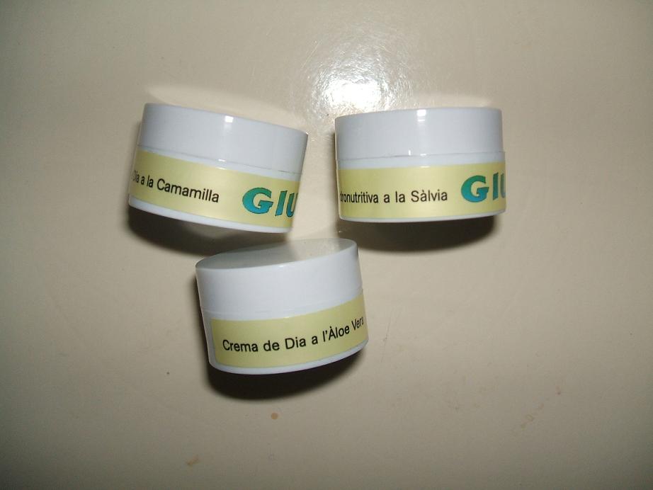 - Tres muestras de crema facial de Cosmetics Giura, una empresa con productos naturales artesanalesque está situada en Gerona.En la que destaca la crema hidronutritiva a la salvia: una crema de día que está indicada para todo tipo de piel, especialmente para mixtas.Es una crema muy ligera que se absorve muy bien, dejando una piel muy suave. Está enriquecida con vitamina E, retarda el envejecimiento celular, es astringente y estimula la circulación de la sangre, nutriendo y dando elasticidad.También está compuesta por el aceite de germen de maíz, aceite de almendras dulces, agua destilada de rosas y aceite esencial de salvia.Otra crema que destacamos es la crema de día al aloe vera: huele genial, además es especial para las pieles con problemas de grasa. Está enriquecida de aceite de jojoba, arcilla blanca, hamamelis, aloe vera y tomillo. Se absorve muy bien en la piel y deja una sensación increíble. Además sus propiedades es ser limpiador, desengrasante y desinfectante.Y por último una muestra de la crema de día de manzanilla: es una crema de día, especialmente para pieles secas. Nutre y protege la piel, aportandole suavidad y elasticidad. Está enriquecida de rosa mosqueta y germen de trigo, además de extractos de flor de malva y manzanilla. Es una crema muy hidratante para mi tipo de piel, pero tambien la recomiendo para las que tengáis la piel seca.