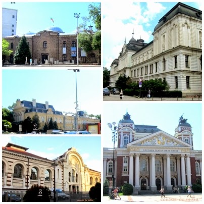 Edificios monumentales contruidos en el siglo XIX, tras la liberación, y que albergan la más altas instituciones del estado... y en marcado contraste, los severos bloques de oficinas levantados por el gobierno comunista.