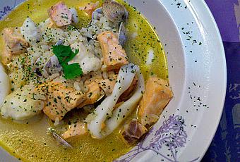 En mi caso utilicé salmón, congrio y calamar, que eran los pescados frescos que había que más me gustaban. Además, le añadí arroz para completar el plato.