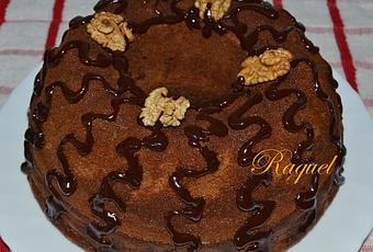 Tamizamos la harina y la añadimos, mezclandolo bien todo.Pre calentamos el horno a 180 grados y preparamos el molde donde vayamos a hacer el bund cake.Lo metemos al horno una media hora aproximadamente.Dejamos enfriar y desmoldamos ahora adornamos con un poco de chocolate desecho en el micro ondas y unas nueces por encima.Lo metemos unos minutos en la nevera para que endurezca el chocolate con el que lo hemos adornado y listo para degustarlo.