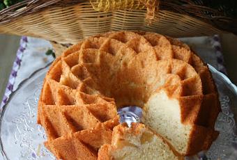 De nuevo un bizcocho en molde de bundt cake con fruta.