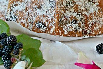 De la misma manera también podemos sustituir el coco rallado que he usado para decorar por un glaseado por ejemplo de limón, que le va que ni pintado tanto para acompañar a las moras como al coco, O ¿qué os parece un preparar un glaseado con las moras y dar un toque de color a este delicioso bizcocho?