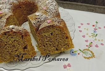 Como puse los cortes de manzana bastante finos algunos se han deshecho y mezclado con el bizcocho.