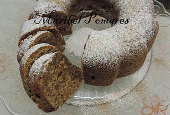 Ahora programamos 4 minutos, velocidad 3 y 1/2, y añadiremos por el vocal la mantequilla, canela, esencia de vainilla, harina y levadura tamizadas, los plátanos picados y las nueces.