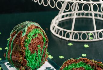 El día 17 de marzo es el día de San Patricio, patrón de Irlanda, y he querido adelantarme a la celebración con esta receta para que podáis hacerla en casa. Se trata de un bundt cake elaborado con cerveza negra y cacao, con un remolino verde en su interior y como colofón, un glaseado de este mismo color.