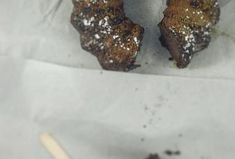 - En un bol mezclamos el té matcha con el cacao, la panela, la harina de teff y la levadura.