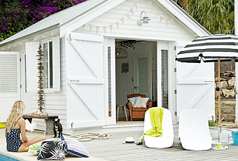 ........................................................................... Cabana rustica de madera, tipo bungalow, en Australia. Es el espacio ideal para disfrutar los fines de semana de verano. Toda la decoracion es de inspiracion retro en blanco, y con telas brillantes. F. www.79ideas.org