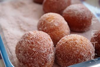 2. Hacer un volcán con ello y añadir el huevo, comenzar el amasado (a mano o máquina) mejor a máquina si tienes amasadora. 3. Cuando el huevo esté bien incorporado ir agregando la leche de a poco mientras se amasa. Prolongar el amasado durante 15 minutos si es a mano o 10 minutos a máquina velocidad media. Debe resultar una masa suave, lisa, brillante y poco pegajosa. Dejar reposar tapada con un paño en un lugar templado durante 2 horas. 4. Habrá duplicado su volumen, ponerla sobre la mesa de trabajo y amasar brevemente (ni un minuto) lo justo para desgasificarla y hacer una bola, ahora espolvorear de harina la superficie de trabajo y estirar la masa con el rodillo a 1cm de grosor. 5. Cortar círculos con ayuda de un cortapastas pequeño y dejarlos reposar ½ hora más. 6. Calentar abundante aceite a 160ºC (para esto va muy bien la freidora) y pinchar los círculos de masa con un tenedor por las dos caras y freírlos de 3 en 3 (no más porque se deformarían). Hay que voltearlos constantemente para que se doren de manera uniforme y queden totalmente redonditos.7. Escurrirlos sobre papel secante y rebozar en azúcar con canela antes de que se enfríen. El paso siguiente es rellenarlos de crema pastelera con ayuda de una manga y boquilla fina, o de una jeringa pastelera.