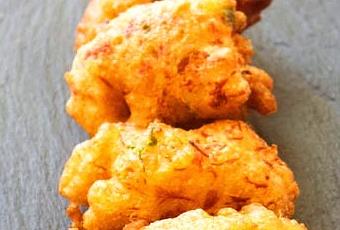 Calentamos aceite en una sarten o un cazo hondos. Con la ayuda de dos cucharas vamos cogiendo un poquito de masa y friendo hasta que estén doraditos los buñuelos. Es importante que el aceite este caliente, pero no hirviendo ya que sino quedarían crudos por dentro.