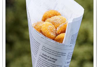 Ingredientes:- 225 grms de boniato asado o cocido y bien escurrido.- 110 grms de harina.- 2 cucharaditas de levadura química.- 2 cucharadas de azúcar.- 1 huevo.- Ralladura de 1/2 limón.- 55 ml de leche.- Una pizca de sal.- Aceite de oliva suave para freír.Para el rebozado:- 6 cucharadas de azúcar.- 1 cucharadita de canela molida.