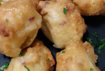 Poner bastante aceite para freir en una sartén con bastante fondo(yo lo hice en un cazo) y con ayuda de dos cucharas hacer bolitas y echar para freir.