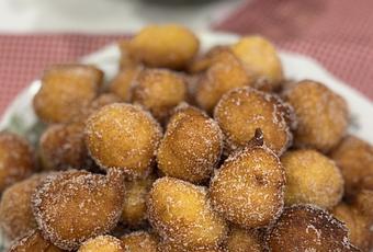 Una vez listos todos los buñuelos los rebozamos en azúcar y canela.