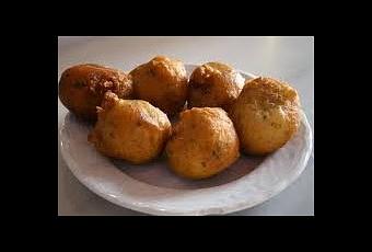 En una sartén grande calienta el aceite y frie la mezcla por cucharadas . Hasta que los buñuelos queden dorados .