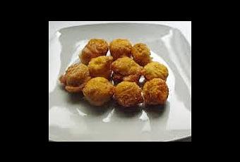 Fríe los buñuelos en una sartén con el aceite caliente , a fuego medio hasta dorarlos .