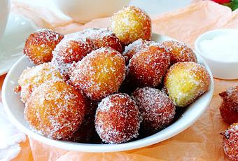 En un cazocon aceite abundante y caliente ir friendo pequeñas porciones de esta masa, ellos solos normalmente sedan la vuelta. Pasarlos a un papel de cocina para que expulsen el exceso de grasa y espolvorearlos con azúcar.
