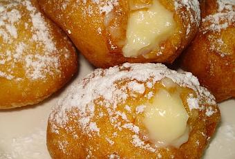 - Ponemos la crema pastelera en una manga con una boquilla puntiaguda. Introducimos la boquilla en el buñuelo y rellenamos.