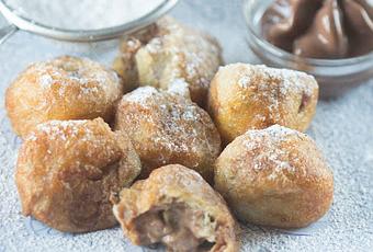 7. Con ayuda de una tijera cortamos un poco el buñuelo y lo rellenamos al gusto.