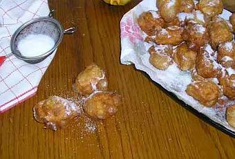 - Cuando esté bien caliente con la ayuda de dos cucharas vamos dejando caer suavemente porciones de masa y freímos los buñuelos por tandas.