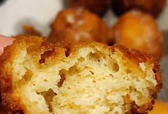 Poner a calentar el aceite y cuando empiece a humear, añadir bolitas de la masa con una cuchara, cuando se doren por un lado, dar la vuelta y acabar de dorar, sacar y poner a escurrir sobre papel de cocina, pasar a un plato y poner más edulcorante al gusto.