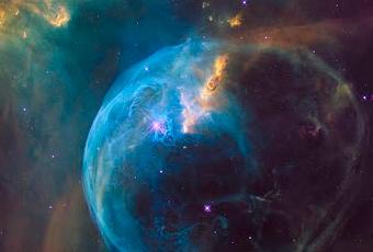 Hoy volvemos con una noticia acerca de nuestro telescopio favorito, ese que nos ha brindando numerosas entradas sobre fenómenos astronómicos espectaculares o curiosos... Sí, hablamos del Hubble. Está a punto de cumplir 26 años en órbita (fue lanzado el 24 de abril de 1990) y, al contrario de lo común, el regalo nos lo ha hecho él. Se llama Bubble Nebula, una nebulosa en forma de burbuja que brilla como un faro en el cosmos gracias a la estrella de su interior. El cosmos es un lugar inmenso, por lo que vamos a concretar un poco más. Esta impresionante nebulosa se encuentra en la Constelación de Casiopea (descubierta por William Herschel en 1787) y está a 8.000 años luz. Esta nebulosa no se acaba de descubrir, ya que no es la primera vez que el Hubble la inmortaliza con su potente cámara. Sin embargo, es la primera vez que la "fotografía" al completo. La imagen que acompaña a esta entrada está compuesta por cuatro fotografías, al igual que "Espacio Profundo" quizás la imagen más conocida del telescopio.