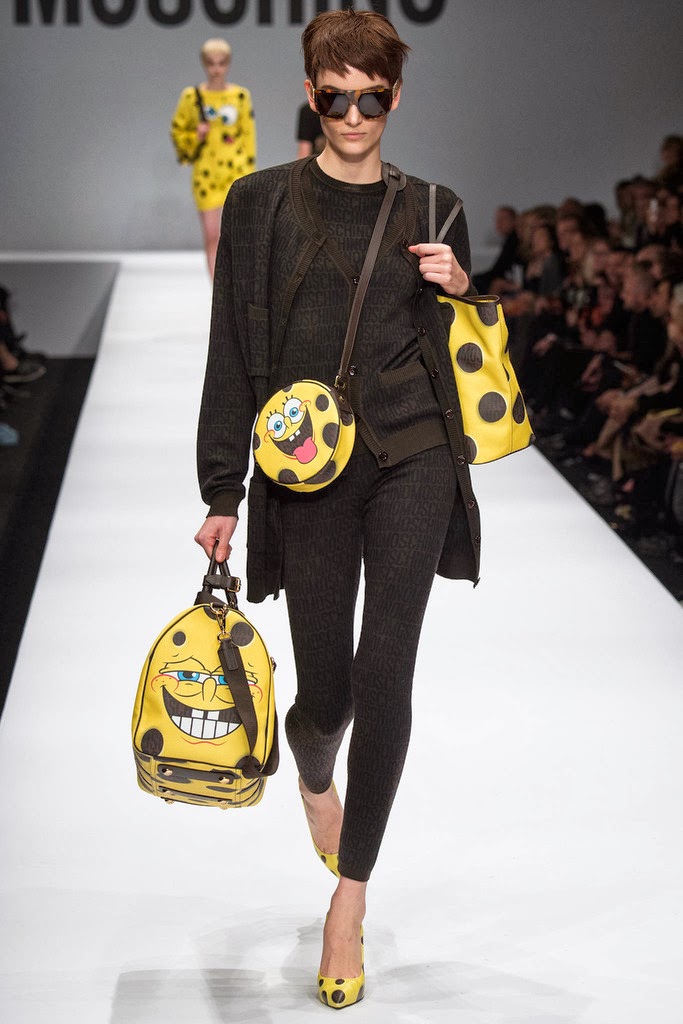 Hoy quiero hablar de una colección que cuanto menos es muy curiosa y disparatada, ¿ queréis vestir con el uniforme de los cajeros de McDonalds? ¿ Es vuestro sueño secreto? Pues Moschino por unos cuantos eurillos os acerca a ese sueño con su colección otoño invierno 2014-2015 presentada en la semana de la moda de Milán. Puede que ya la hayáis visto pero no quería dejar de comentarla en el blog, por cierto en esta misma línea hablamos de mis horrores de la semana de París.A mi la verdad es que no me gusta nada de nada aunque no me ofendo como muchos de los trabajadores de la cadena han hecho ni creo que la intención de Jeremy Scott ( director creativo de la firma) en su primera colección para la firma fuera hacer sentir mal a nadie. Trabajar y vestir un uniforme de MacDonalds no es nada deshonroso por lo que basarse en ello para hacer una colección por muy cara que sea frente a los sueldos de los empleados de esta compañía de fast food, por lo que no lo creo ofensivo ni hiriente. Entiendo que lo que hace Moschino es rendir culto a la cultura pop y todos sus iconos aunque para mi el tributo sea ridículo porque es feo, llamativo, de mal gusto, ¡una horterada! aunque si el objetivo era llamar la atención para mi que lo ha conseguido.Para más inri, además de crear unos looks parecidos a los que llevaría un empleado del McDonnalds recreando sus uniformes o utilizando los mismos colores o creando complementos con forma de recipiente para patatas fritas, palomitas, bebidas, etc ha optado por dar cabida a Bob Esponja y Fruit Loops.Es una colección terrible.