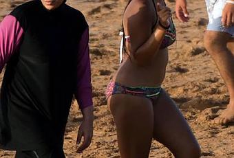 Parece ser que en Marruecos se están produciendo situaciones tensas, en determinados establecimmientos hosteleros, respecto a la utilización, o no, del “burkini”. La imagen de nuestra entrada ilustra la sustancial diferencia entre una y otra prenda de baño, desde mi punto de vista, soy más proclive a la que ofrece la muchacha que vemos a la derecha, en contraste con esa suerte de empeño en ocultar piel y pelo hasta límites insospechados, que muestra la portadora del “burkini”. Pero, a la vez, no podemos prohibir en nombre de la libertad, como tantas veces se ha dicho en este mismo espacio, y por respeto a las creencias religiosas de quienes, aún siendo minoritarios en nuestro país, la indumentaria debe quedar al libre albedrío de quien la utilice, dentro del límite que exige el inicio de la libertad ajena. Distinto es pensar que la fe puede imponerse mediante la violencia, para quienes no cabe otro respeto que la aplicación de la ley y la respuesta proporcional a la amenaza que representan.