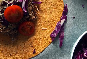 Ropa viejaSalsa picanteQueso enmentalTomateLombardaTortas de burrito o similar