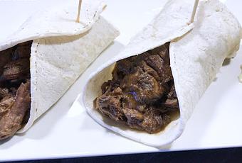 Este burrito tenía pensado hacerlo con carne de aprovechamiento, tenía unos jarretes divinos cocinados al estilo del rabo de toro con un vino tinto espectacular y quería darle un giro a la receta.No hace falta que sea de este modo, si el jarrete esta rico no necesitas mas, pero el hecho de ser una carne fibrosa que fácilmente puedes deshacer con un poco de presión me recordó los tacos de barbacoa mejicanos y quería darle ese toque picante y único que tanto gusta.El caso es que con solo 2 filetes que quedaron del dia antes no había bastante para comer al mediodía todos pero si para que salieran unos cuantos burritos para la cena y asi todos lo probábamos.En el reto Tus recetas debíamos hacer algo rico con salsa de soja y el resultado ha sido tan bueno que ya mismo repetimos la receta.Si quereis ver mas recetas ricas con esta salsa no dejéis de entrar AQUÍ.