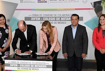 Toluca, Estado de México.- En el marco del mes del adulto mayor y para beneficiar a este sector de la población, el Sistema Estatal para el Desarrollo Integral de la Familia (DIFEM) y el Colegio de Notarios del Estado de México, firmaron un convenio de colaboración con el objetivo de que las personas de 60 años y más, obtengan trámites con descuentos de honorarios en las Notarías Públicas del territorio mexiquense.