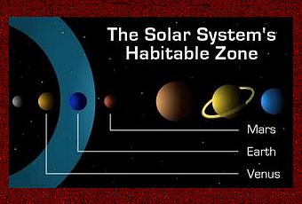 Diagrama que muestra la zona habitable del Sistema Solar.