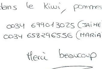 Hace poco, en la localidad de Orthez, por las perdidas profundidades boscosas de las Landas francesas, tuve ocasión de fotografiar este anuncio en el escaparate de acceso a una peluquería: "Cinco personas buscan trabajo en el kiwi, manzana...0034 679013025 (JAIME)0034 658296556 (MARIA)Muchas gracias"A todos los que pasan necesidades y buscan sin encontrar, a los que se han planteado incluso emigrar: ¡Todos mis ánimos!... ¡Porqueya lo veréis: todo acabará cambiando algún día!...Aunque bien es verdad que antes deberíamos comenzar por cambiar a este gobierno...