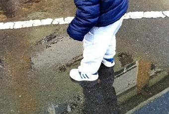 La foto que os pongo a continuación, es de uno de los días que nada más salir del cole, se fue corriendo al patio para saltar sobre uno de los charcos.