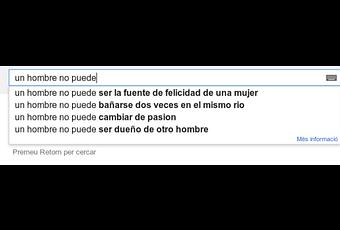 En la primera búsqueda, con autocompletar de google, parece que no somos necesarios para las mujeres en la confianza de que ellas puedan trazarse su propia vida. En la segunda nos evoca a Heráclito y el fluir de la vida como un rio. En la tercera el hombre debe ser fiel a su pasión y, finalmente, la cuarta es más reivindicativa y anarquista.