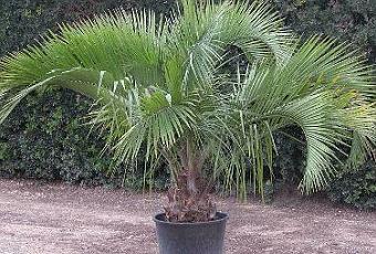 Mediana de palma, con un máximo de 6 metros de altura; Tronco solitario, robusta y fuertemente marcada por el desprendimiento de las hojas viejas. Tiene gris-verde follaje de color.