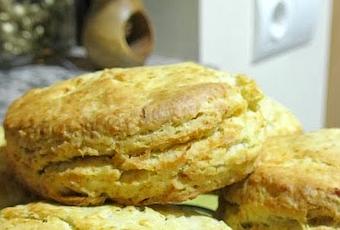 - • Mezclar la harina, levadura, bicarbonato sódico y sal en un cuenco. Añadir la mantequilla y mezclar con las manos hasta que parezcan migas. Añadir el "buttermilk" y la nata y mezclar bien.