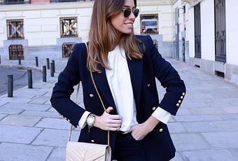 Os dejo este look con jeans y blazer estilo marinero en azul marino, otra de las últimas tendencias de este invierno.