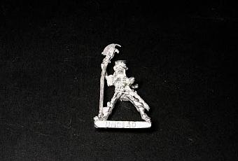 Pero también salieron otras miniaturas que no tenían nada que ver con el escenario y nuevas gamas como la C21 Undead Cavalry para el ejército de muertos vivientes de aquella época. Las figuras, diseñadas por Bob Naistmith, eran completamente de metal y estaban formadas por dos piezas. Por un lado el jinete y por el otro la montura. Es una gama de miniaturas que la vimos en el Citadel Journal Spring 1986 y que originalmente estuvo compuesta por siete jinetes y tres monturas. De los 7 jinetes originales tengo este llamado originalmente Doomsmile y que en el Red Catalogue de 1991 pasó a ser Halberd 1 con número de referencia 074555/30.