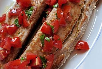 Prepara el aliño: pica el tomate, el perejil o el cilantro , añade sal en escamas con un poco de pimienta y unas gotas de limón, lima o vinagre. Añade aceite de oliva virgen. Mezcla el aliño bien y reserva.