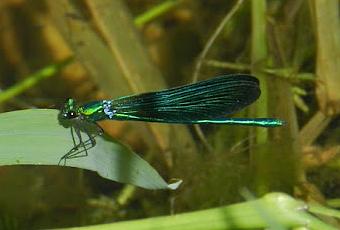 Los caballitos del diablo se diferencian de sus parientes las libélulas básicamente por dos rasgos: el presentar las alas juntas en reposo y no separadas; y por el contrario tener los ojos en el rostro bien separados y no juntos. Son pequeñas joyas de nuestra naturaleza cada vez más escasas, ya que si bien otras especies pueden soportar pequeños grados de contaminación, Calopteryx virgo precisa de aguas limpias y bien oxigenadas. Los ejemplares adultos volarán hasta septiembre.