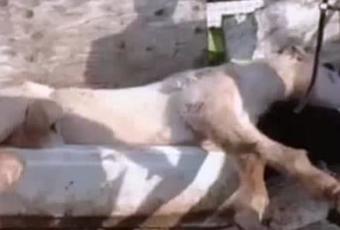 Bomberos en el norte de California rescataron un caballo que se quedó atascado en una bañera al aire libre.