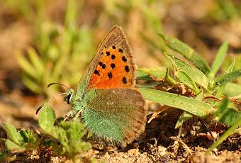 Avispas y virus forman un dúo difícil de evitar incluso para la oruga de la mariposa cardenillo (Tomares ballus), a pesar de que este endemismo del oeste del mediterráneo se desarrolla prácticamente oculto dentro de las flores de ciertas leguminosas (Anthyllis, Astragalus, Lotus…) y de que cuenta con la protección de las hormigas (en este caso, de las Plagiolepis pygmaea). Muchas otras mariposas de su familia, los Licénidos, establecen relaciones con las hormigas. Se sospecha incluso que la mariposa cardenillo pasa la etapa de crisálida dentro de los hormigueros, al estilo de la hormiguera de lunares. Lo cual parece cuadrar con las citas de canibalismo entre las orugas de cardenillo, pues las de la hormiguera de lunares también son carnívoras al final de su etapa larvaria, cuando se alimentan de los huevos y larvas de las hormigas que las cuidan. En nuestro ecosistema, a principios de la primavera, es común ver a los cardenillos revoloteando a nuestro paso, pero en cuanto se posan su librea verdosa los camufla hasta hacerlos virtualmente invisibles entre la hierba.