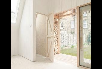 En medio de la ciudad, en un terreno de muros de mamposteria rustica, se construyo esta pequena cabana , totalmente en madera y con un concepto rustico y simple.